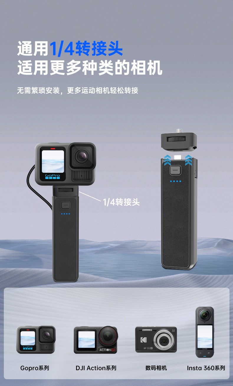 2. Install a 1/4 adapter to mount sports cameras and small devices as a handle bracket.