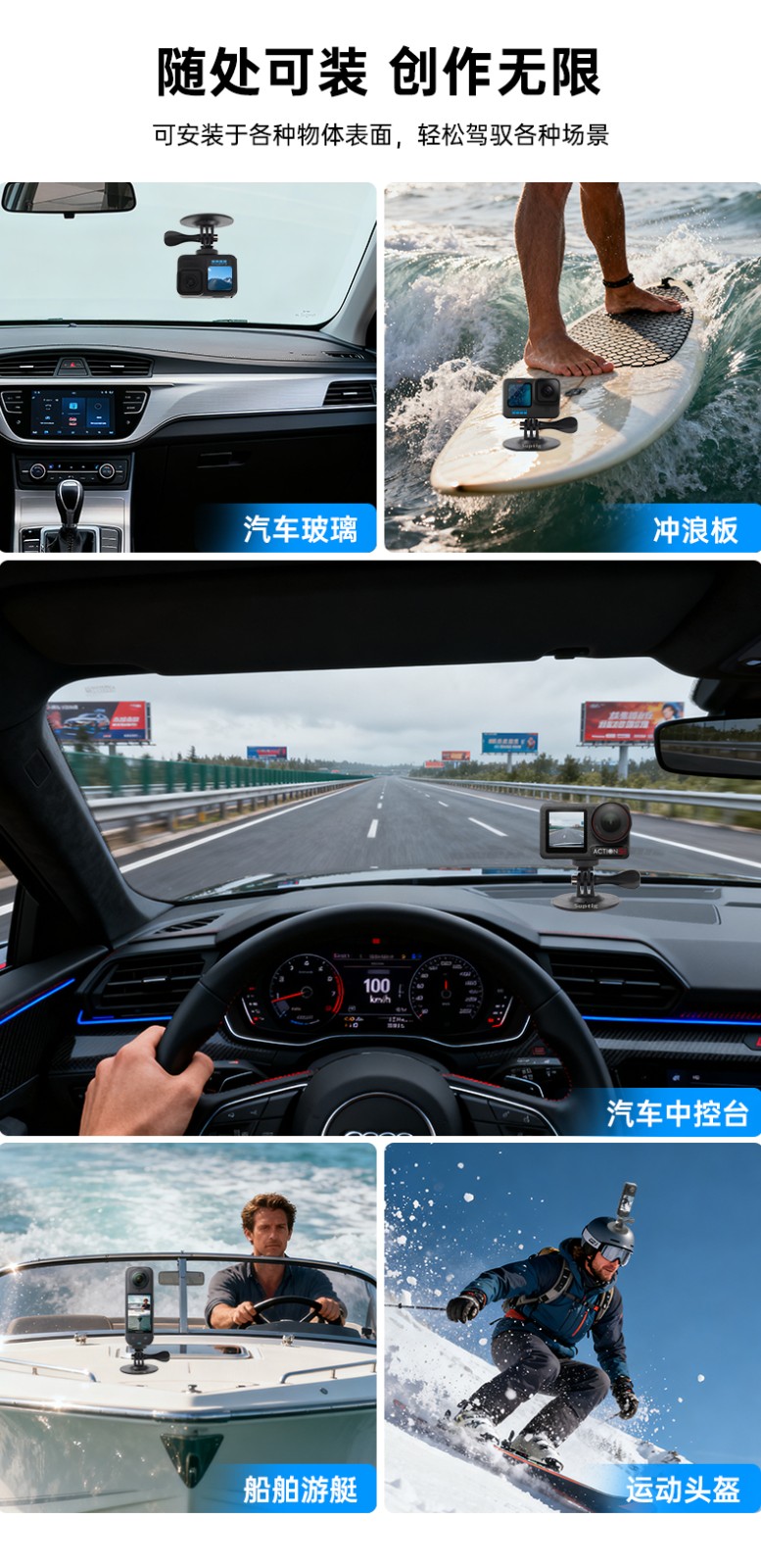 The mount can be attached to helmets or sailboats and paired with action cameras for video recording.