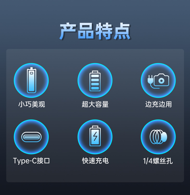 品名与编号:RSX-472 Pocket3 手柄充电器 1.两侧各有一个弹力锁扣,可将Pocket 3相机插入USB口,可给相机充电又便于操作。 2.安装上1/4转接头,可把运动相机和小型设备安装上去,当做手柄支架使用。